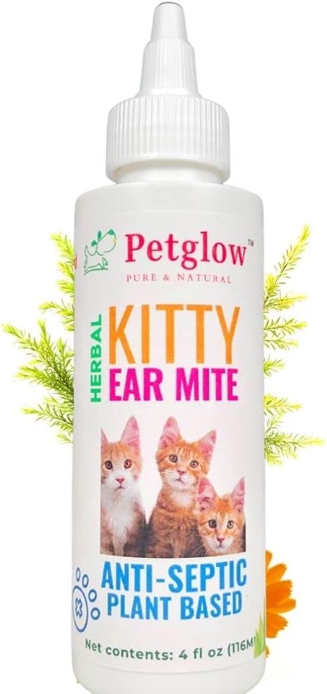 Amazon Com Petglow Ear Mite Treatment For Cats Organic Herbal Drops Cat Ear Infection Cleaner For Mites Pet Supplies